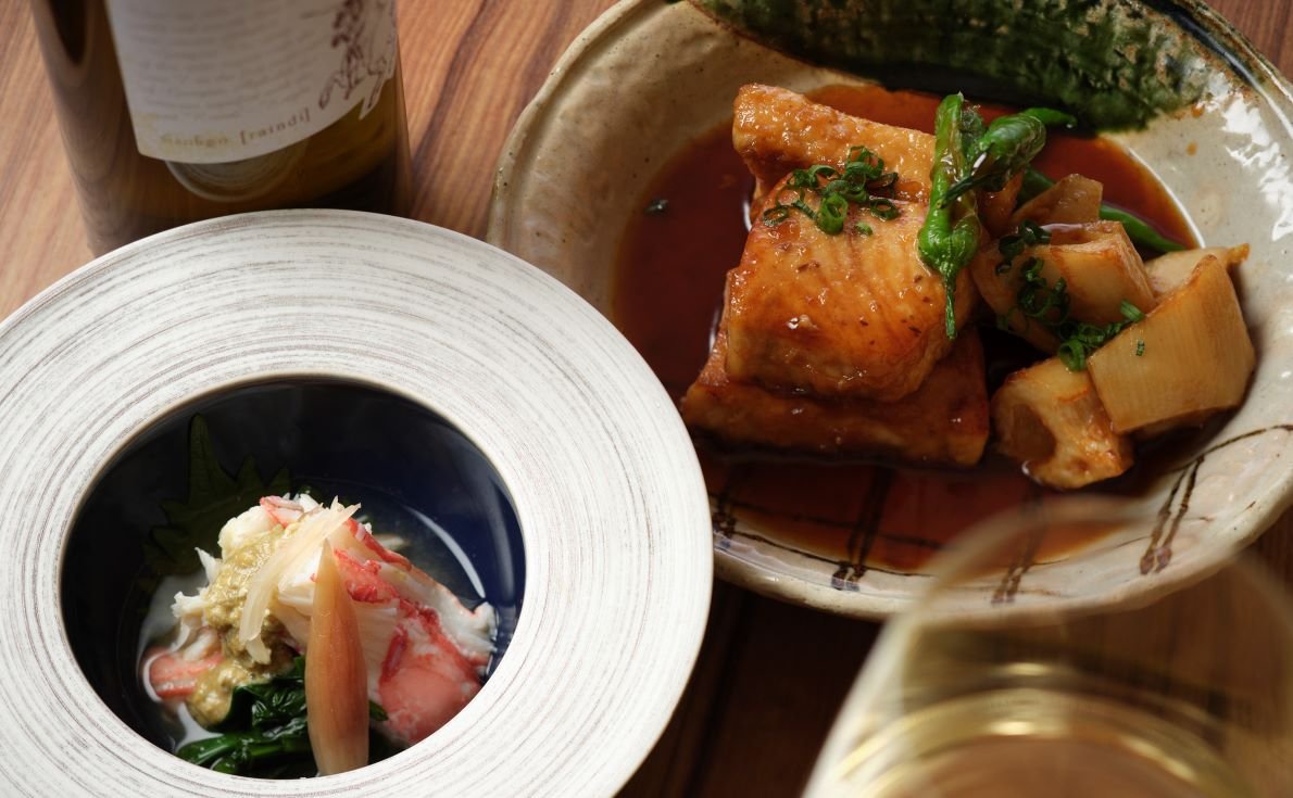 ワインを使うよりもお酒で蒸すことによって柔らかい果実味との相性がさらに良くなるのもポイントです。もう一方、酢味噌のまろやかで甘みのある味わいにも、リッチな味わいのムツヴァネは素晴らしい相乗効果をもたらします。