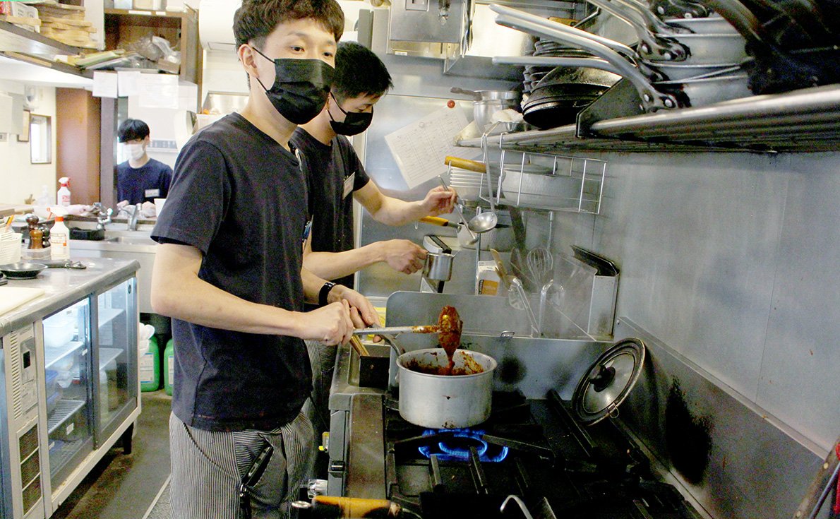 当店は大衆酒場でも化学調味料を使わずに手作りの品質にこだわっています。ミートソースもベースのソースこそ自社のセントラルキッチンで仕込みますが、肉を加えて調理する工程は毎日店内で行っています。また肉類などは、それぞれ産地を視察して納得した品質のものを仕入れています。